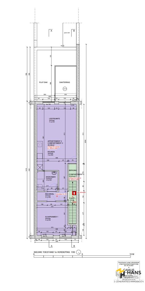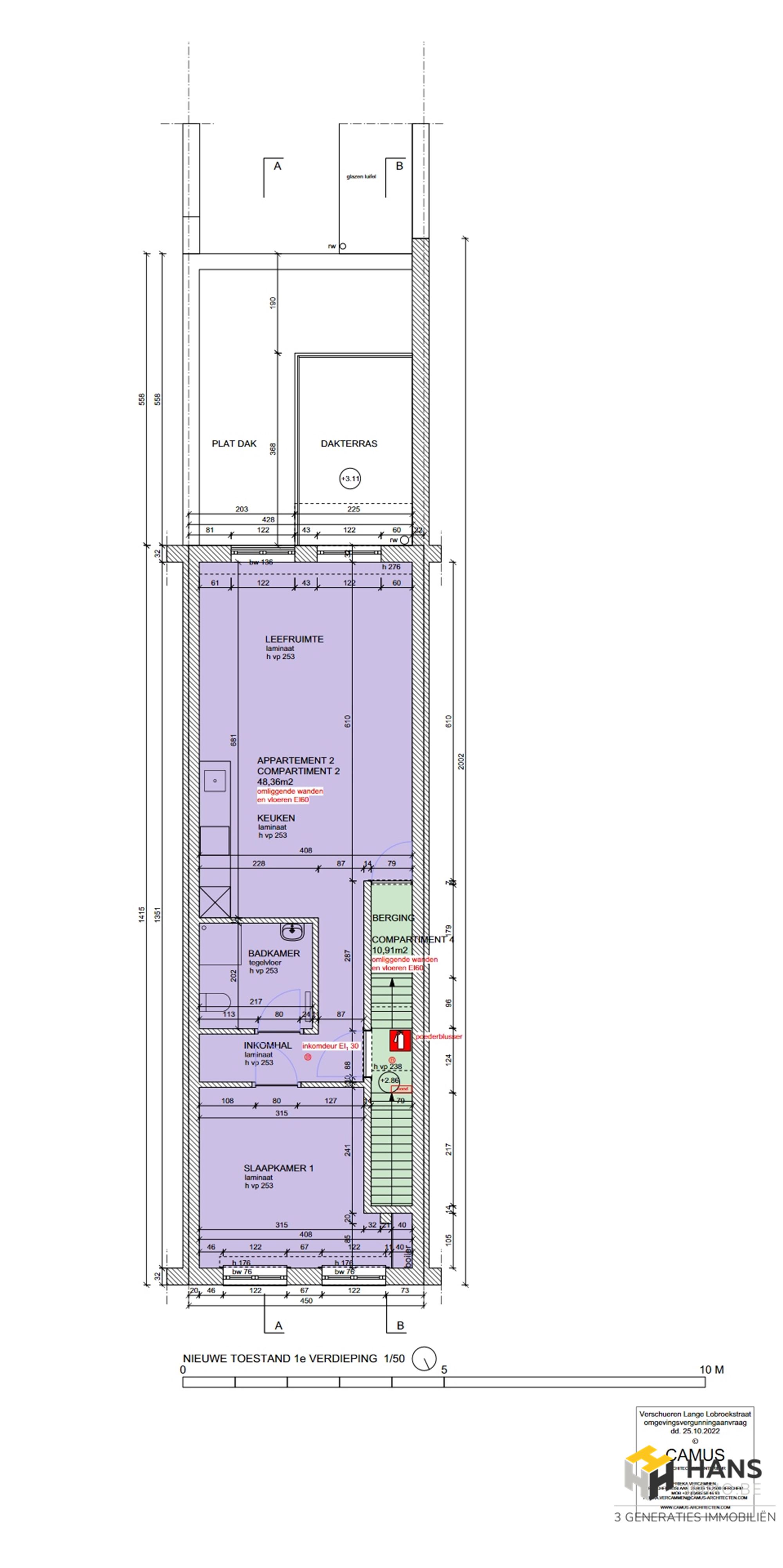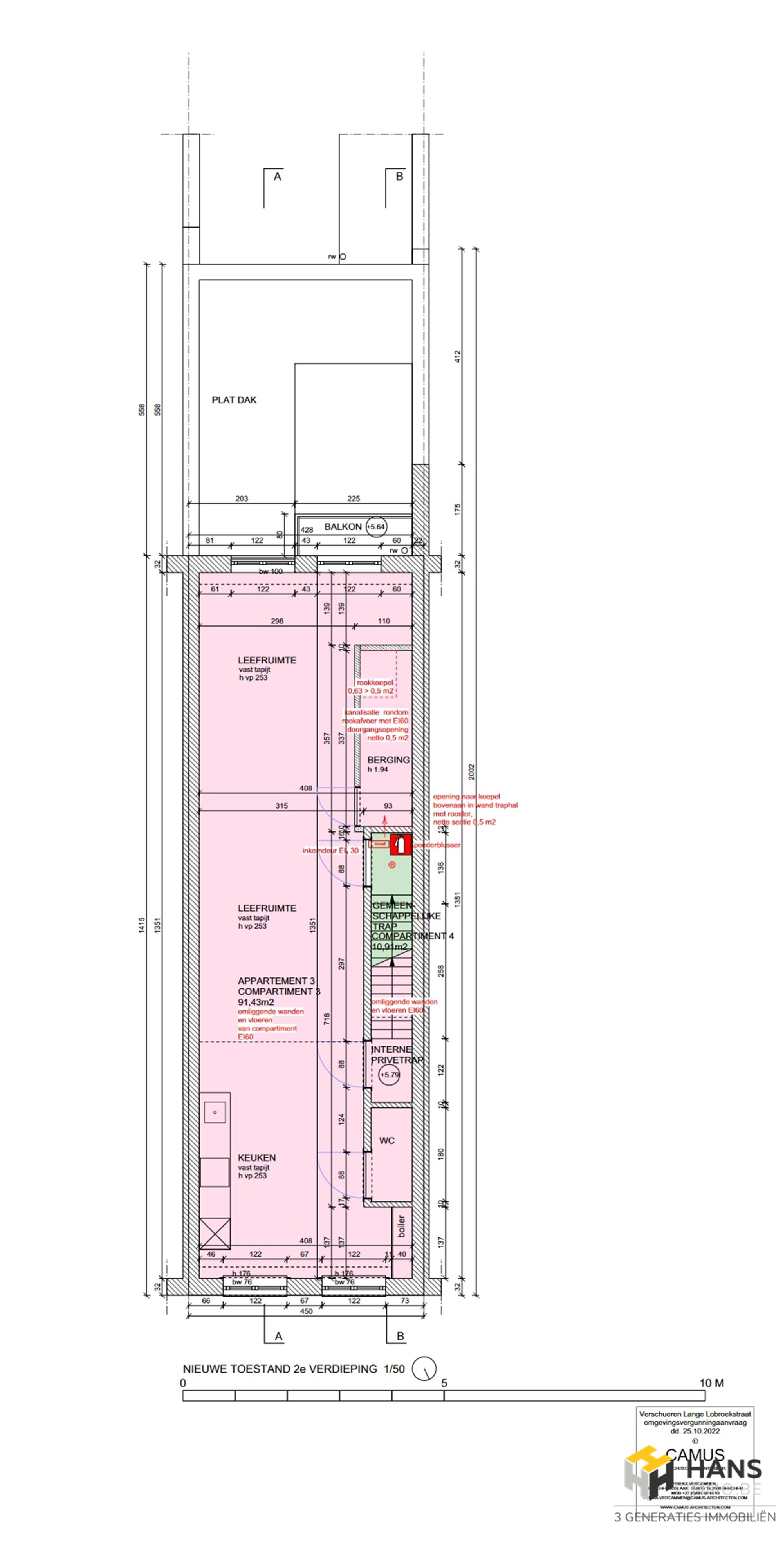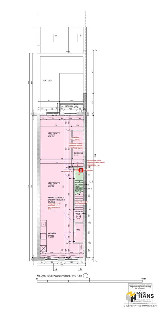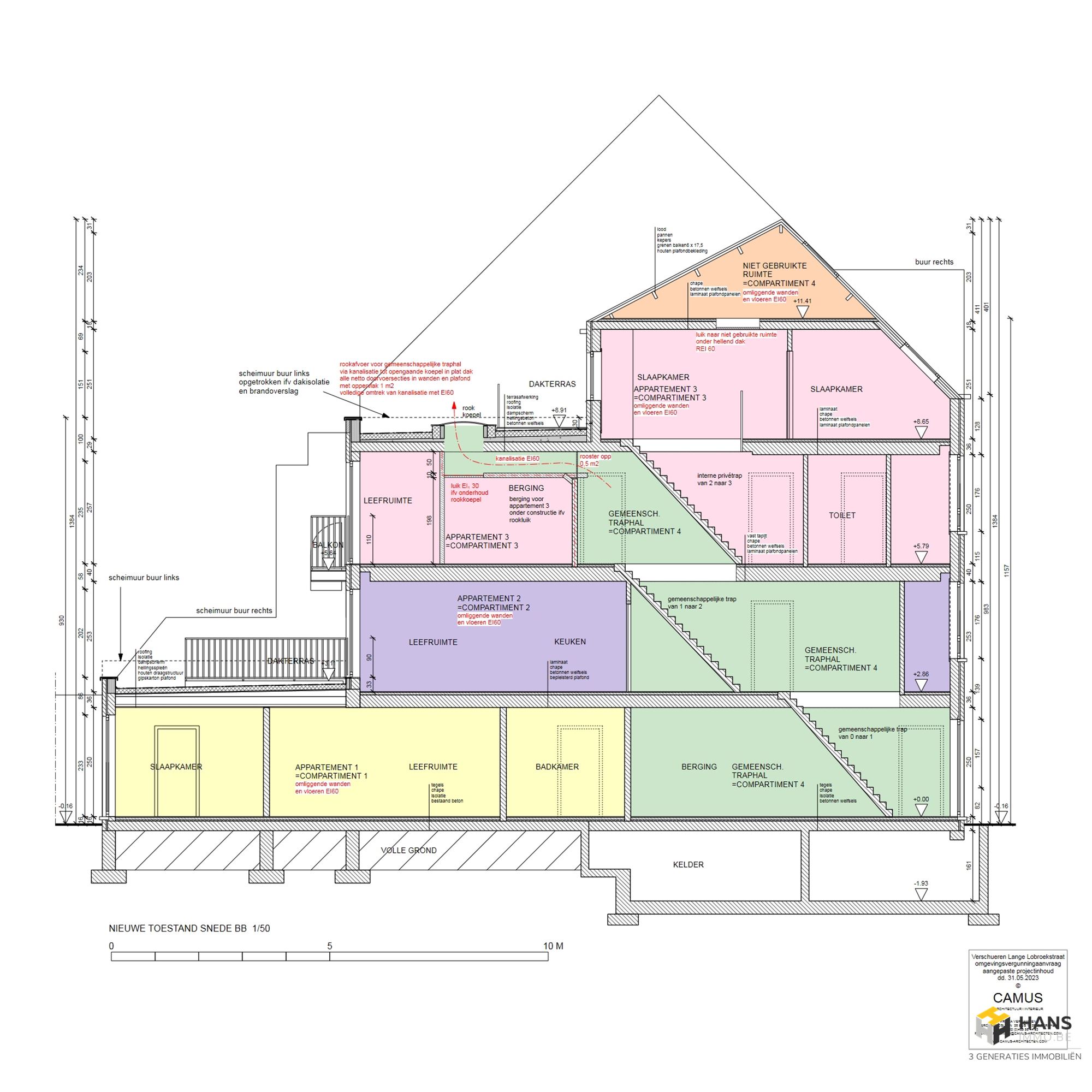 Het pand is gunstig gelegen in de wijk Antwerpen-Dam, een gezellige buurt die een sterke heropleving doormaakt en nog verder zal doormaken in de nabije toekomst dankzij de vernieuwing van de Slachthuissite en de nabijheid van Park Spoor Noord. Het openbaar vervoer en velo-stations zijn goed vertegenwoordigd op wandelafstand en met de wagen bereik je de stadsrand en de snelweg in een mum van tijd. Het pand wordt verkocht met een vergunning die verdere optimalisatie van de 3 appartementen mogelijk maakt (betere indeling, terrassen etc.).