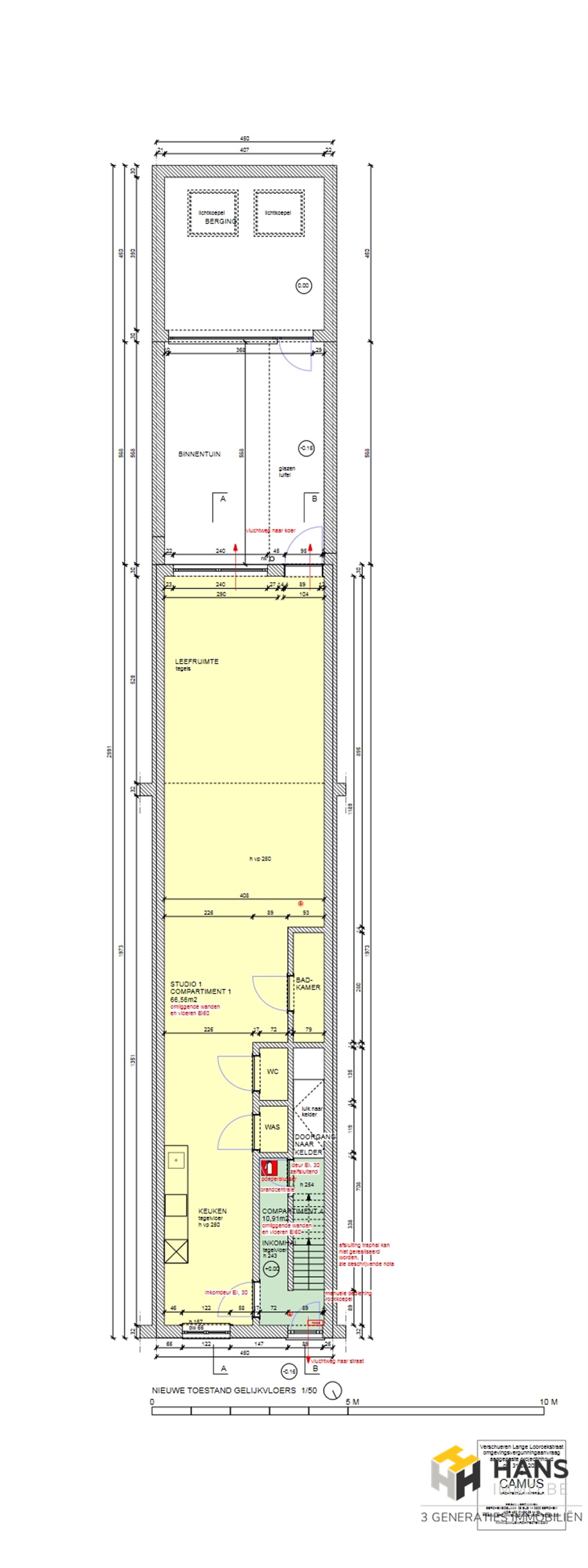 De opbrengsteigendom bestaat uit 3 appartementen: het gelijkvloers (ca. 85m²) en de eerste verdieping (ca. 60m²) beschikken over 1 slaapkamer, terwijl het triplex appartement (ca.105m²) op de bovenverdiepingen 4 slaapkamers heeft. De keukens zijn uitgerust met een basisinrichting en in de badkamers zijn er een douchecabine, wc en lavabo aanwezig. Het gelijkvloers heeft toegang tot een zuid-georiënteerde koer (16 m²) en bijgebouw/berging. Zoek je een interessante opbrengsteigendom in een opkomende buurt? Hans Immo leidt je graag rond in deze opportuniteit! Voor meer info of een gratis schatting surf naar www.hansimmo.be