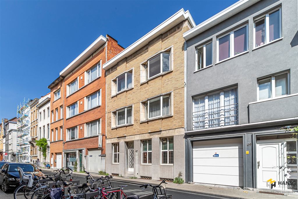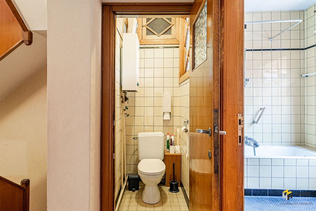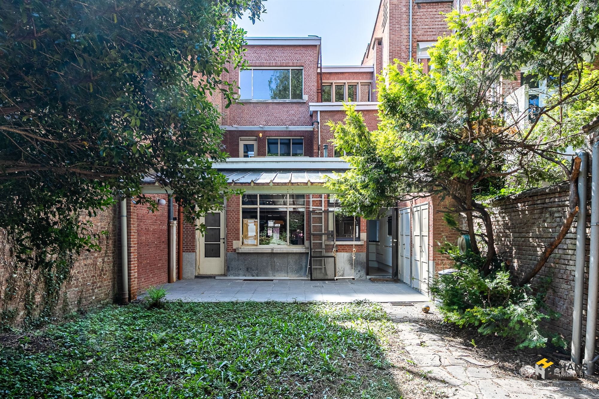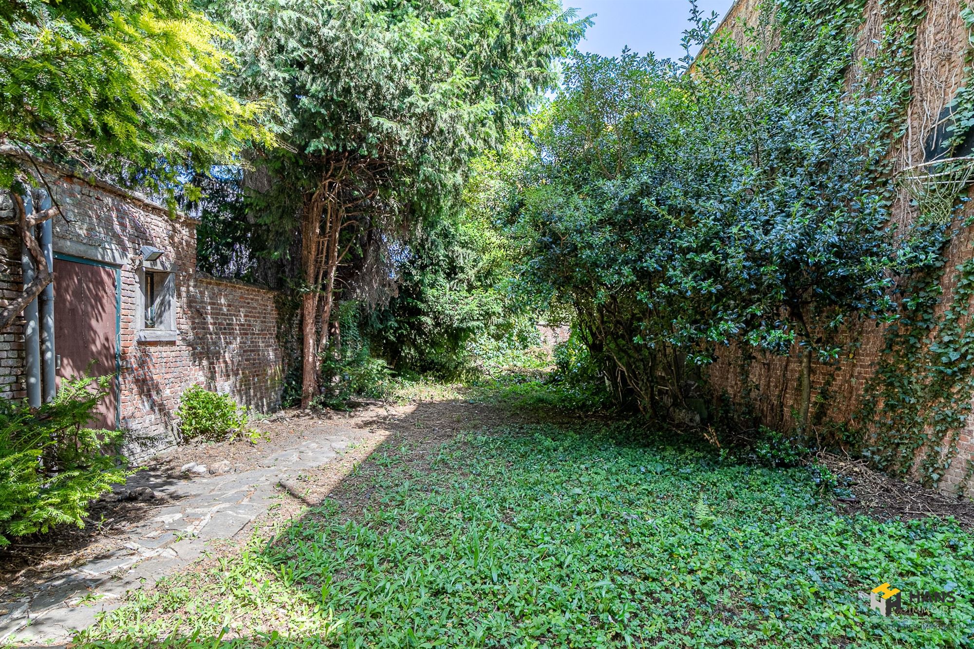 Je komt binnen in de hal, die links toegang biedt tot een eerste kamer. Wanneer je verder doorloopt kom je in de trappenhal en merk je meteen de ruimtelijkheid van het pand. Er is een aparte wc voorzien in de trappenhal. Rechts op het gelijkvloers zijn er 3 grote ruimtes aanwezig, die onderling met elkaar in verbinding staan en in elkaar overlopen. De aparte keuken is 18 m² groot. Achteraan heb je toegang tot de weelderige stadstuin (128 m²) met oost-oriëntatie.