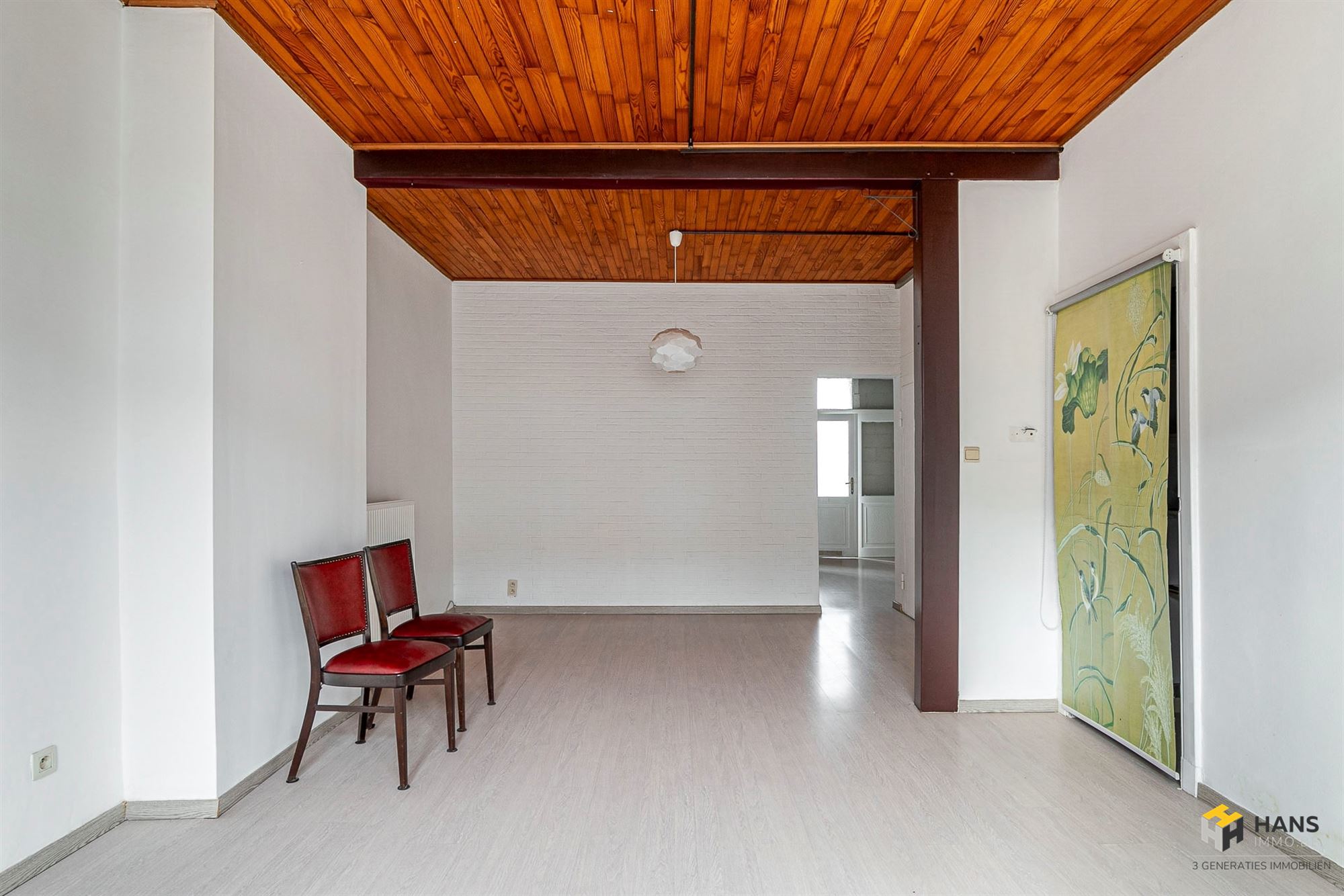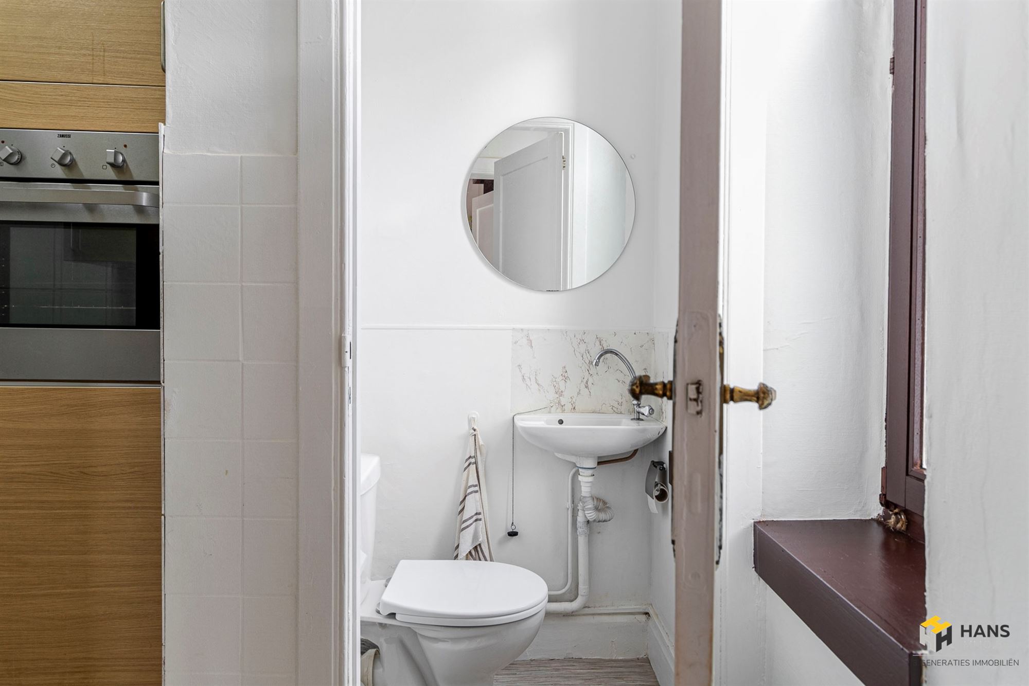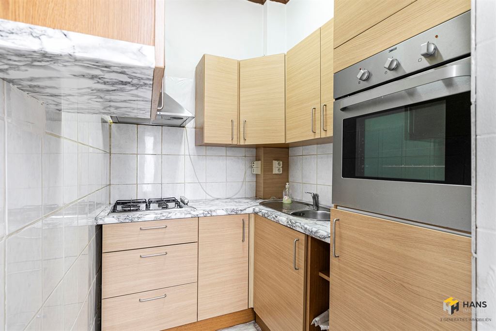 Je komt binnen in de ruime woonkamer (28 m²) met 2 ingemaakte bergkasten. De aparte keuken (5 m²) bevindt zich vooraan en is uitgerust met een gasvuur, dampkap en ingemaakte frigo en oven. Ook is er een aparte wc aanwezig. Achteraan is er een tussenruimte (10 m²), die veel mogelijkheden biedt. De slaapkamer is 14 m² groot en de badkamer (4 m²) is voorzien van een lavabomeubel en douchecabine.