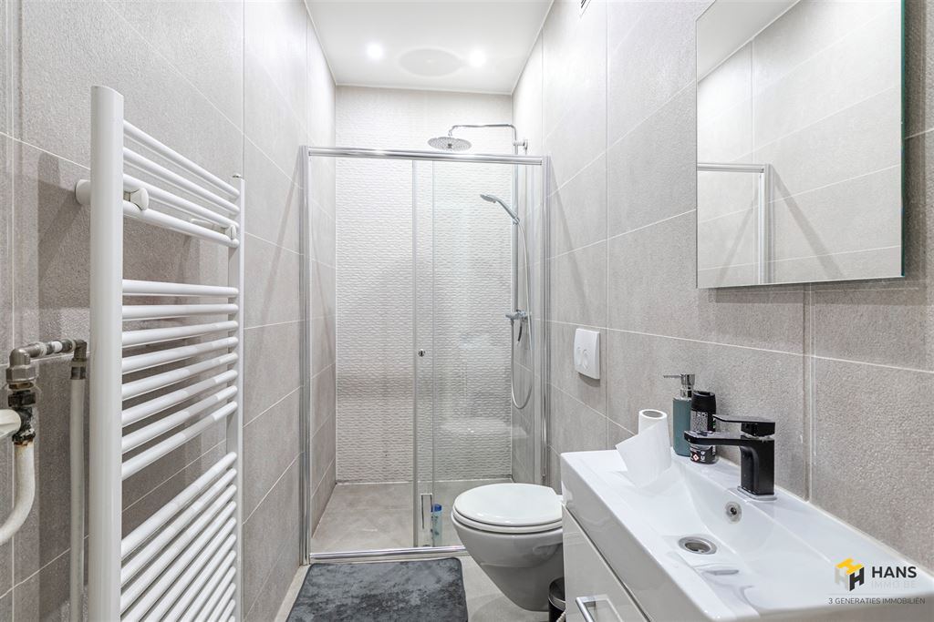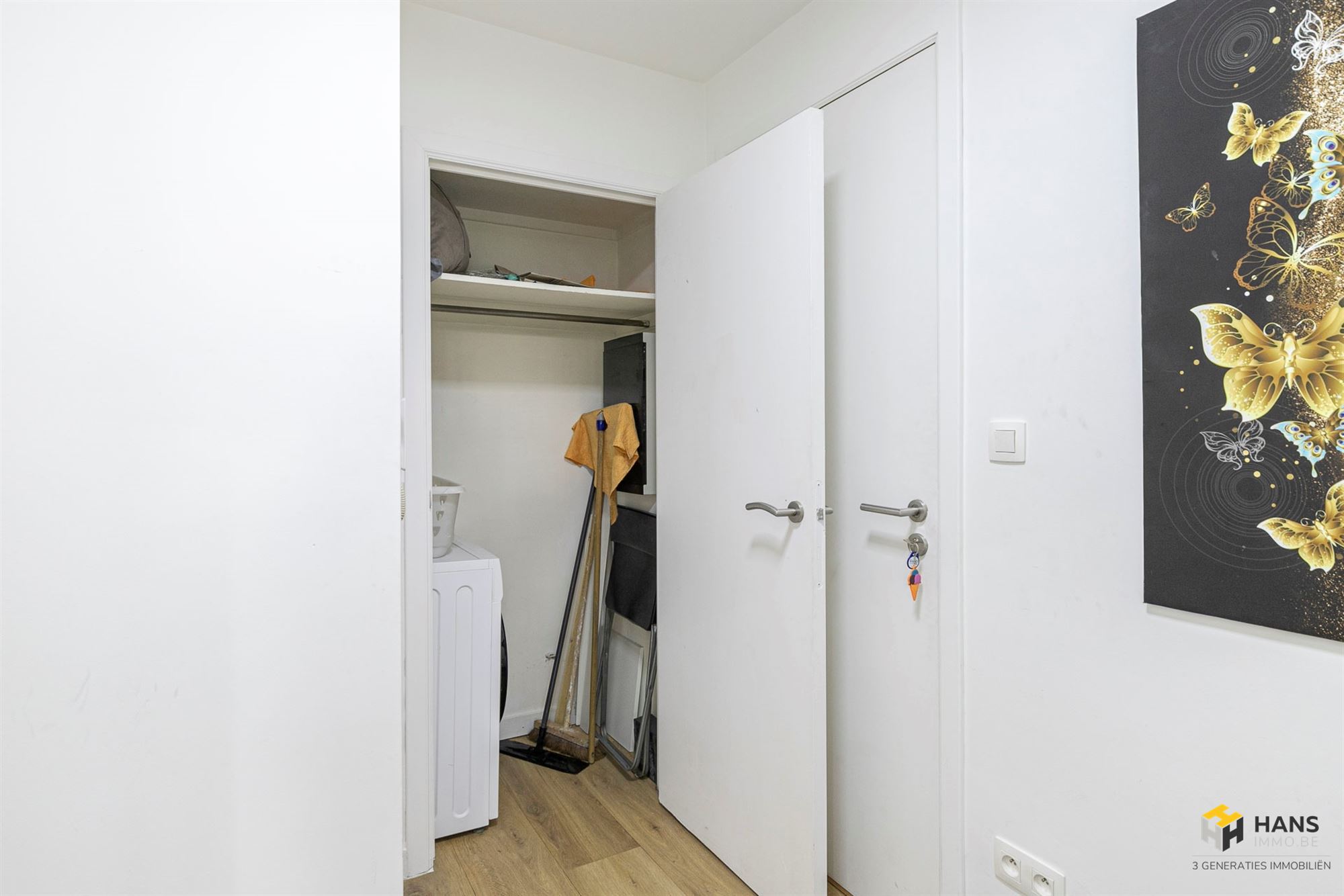 Je komt binnen in de aparte inkom met ruimte om een vestiairekast te plaatsen. De lichtrijke woonkamer met open keuken heeft een oppervlakte van 23 m² en grenzend hieraan bevindt zich de open slaaphoek (13 m²). De badkamer (4 m²) is voorzien van een douche, lavabomeubel, wc en handdoekdroger. Ook is er nog een kleine berging met aansluiting voor een wasmachine aanwezig.