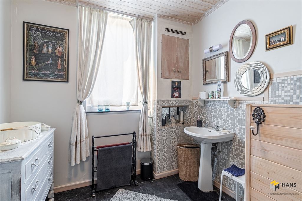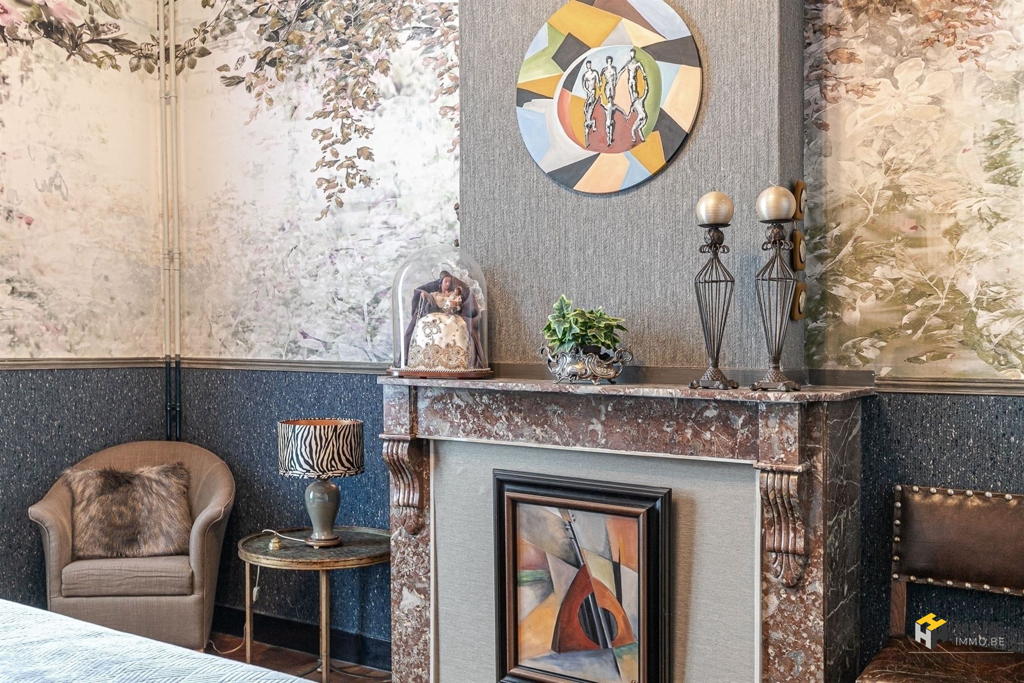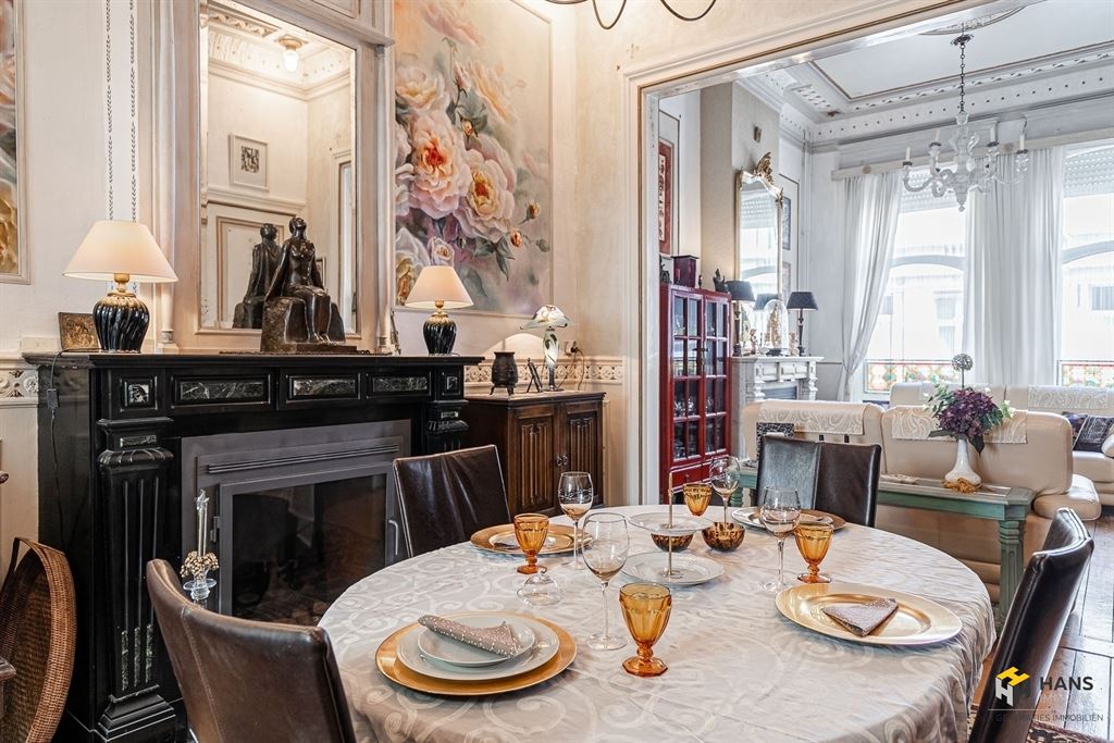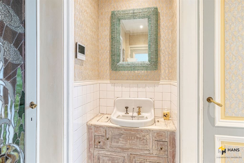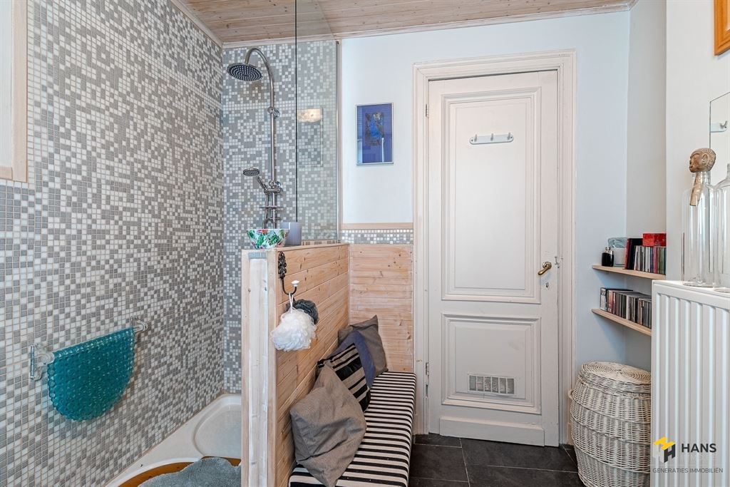 Je komt binnen in de inkom-/traphal, waar de ruimtelijkheid en de authentiek bewaarde elementen meteen in het oog springen. Rechts heb je toegang tot de woonkamer (35 m²), die achteraan overloopt in de lichtrijke eetkamer (17 m²). De keuken (15 m²) is apart. Nog een extra troef van dit unieke pand is ongetwijfeld de gezellige stadstuin (51 m²) met zuid-west-oriëntatie.