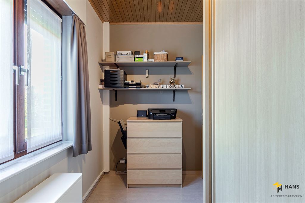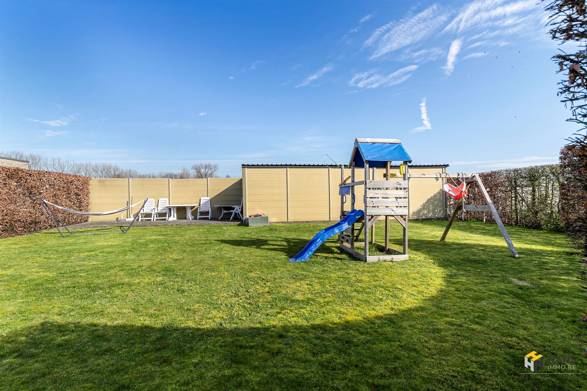 Je komt binnen in de inkomhal met apart gastentoilet. De hal geeft uit op de woonkamer met open keukenhoek, goed voor een oppervlakte van 48 m². Achteraan heb je via een schuifdeur toegang tot de veranda met zicht op de verzorgde, noord-georiënteerde tuin (400 m²) met tuinhuis (27 m²). De keuken staat in verbinding met de nachthal, die uitgeeft op de overige aanwezige ruimtes. De 3 slaapkamers zijn 8 m², 11 m² en 17 m² groot en de badkamer (6 m²) is voorzien van een inloopdouche, lavabo en wc. In de inpandige garage (26 m²) met sectionaalpoort is er nog een extra berging (4 m²) aanwezig. Via een vaste trap bereik je de bergzolder (17 m²). Tot slot is er nog een carport aanwezig aan de rechter zijde van de woning.