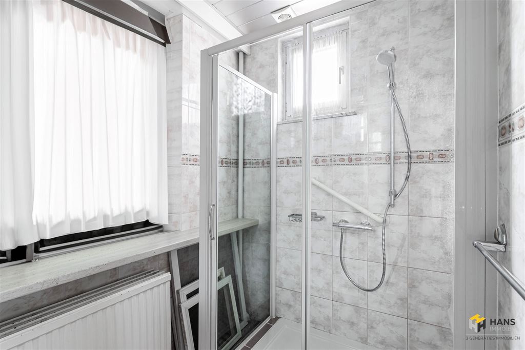 Je komt binnen in de ruime inkom-/traphal met voldoende ruimte om een vestiaire- en schoenenkast te plaatsen. De garage loopt van voor- tot achteraan door en is 32 m² groot en ook is er nog een berging/wasplaats (8 m²) aanwezig op het gelijkvloers. Op de eerste etage situeert zich de lichtrijke woonkamer (36 m²) met aangrenzend de aparte keuken (8 m²), die volledig vernieuwd is en uitgerust is met een kookvuur, dampkap, spoelbak, ingebouwde oven, vaatwasser, frigo en diepvries. Op de hal is er nog een apart toilet aanwezig. De bovenverdieping herbergt de 3 slaapkamers van 9 m², 15 m² en 17 m². De badkamer (4 m²) tot slot is voorzien van een douchecabine en lavabomeubel. Alle ramen beschikken over (elektrische) rolluiken. 10 Zonnepanelen aanwezig!