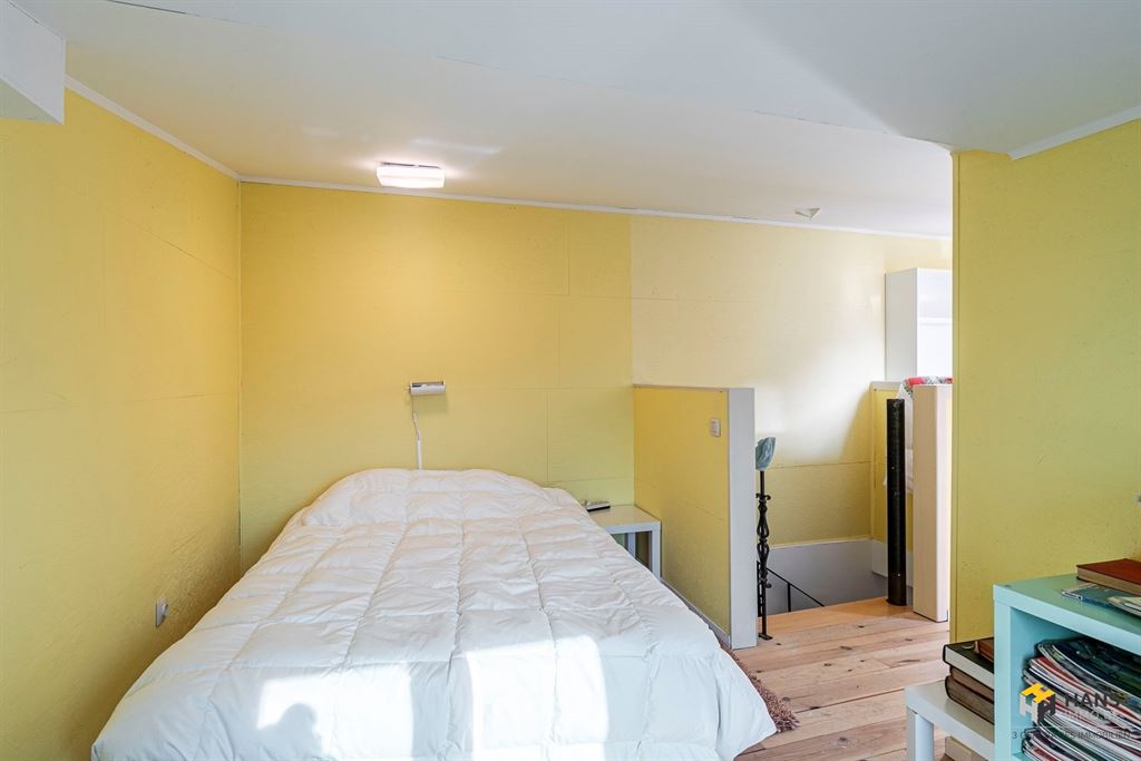 Je komt binnen in de inkom-/traphal met op het uiteinde een berging/wasplaats (4 m²). De rest van het gelijkvloers bestaat uit een ruim magazijn (125 m²). Op de eerste verdieping treffen we een eerste woongedeelte, dat instapklaar is. Vooraan bevinden er zich een eerste (bureau)kamer (5 m²) en de woonkamer met aangrenzende, open keuken, goed voor een oppervlakte van maar liefst 45 m². Achter de keuken strekt een gang zich uit naar een ruime slaapkamer (38 m²) met douche, lavabo en aparte wc. Via de wenteltrap bereik je nog een slaapkamer (20 m²).