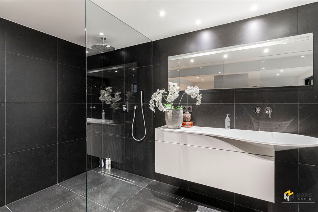 Vanuit de hal op de eerste verdieping daal je via een vaste trap af naar het gelijkvloers, waar een ruime multifunctionele kamer (29 m²) op je wacht. Dankzij de directe toegang tot de tuin vormt deze ruimte een ideale hobbykamer, thuiskantoor of extra leefzone. Aansluitend vind je hier bovendien een tweede, luxueus afgewerkte badkamer (7 m²), wat deze verdieping nog veelzijdiger maakt