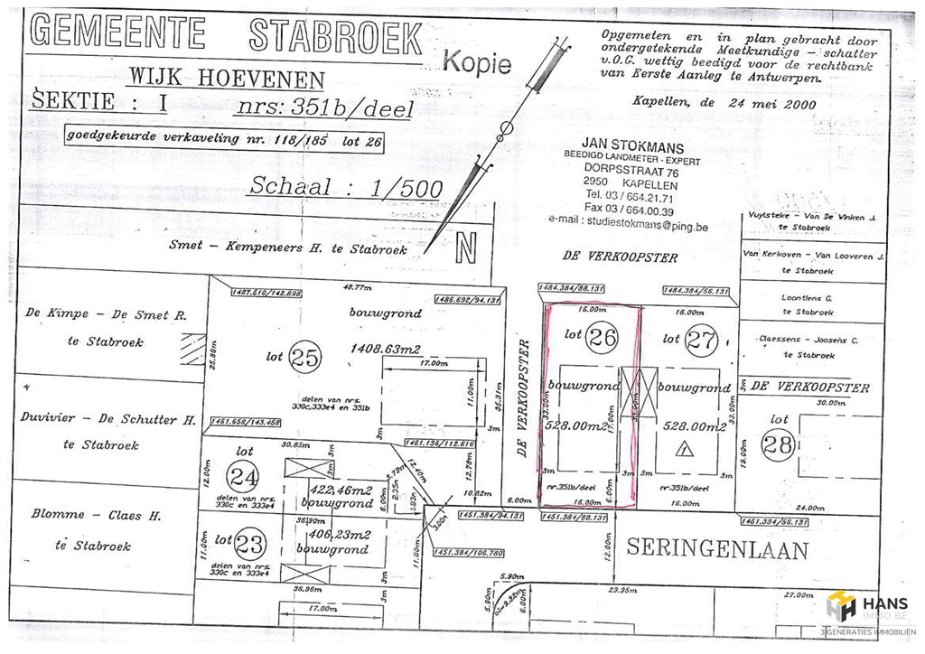 Grond van 528m² voor het bouwen van een 1 gezinswoning.  Perceel 16m op 33m. Gevel van 10m en diepte 17m.Bouwvoorschriften zijn opgevraagd bij de gemeente Stabroek voor meer info www.hansimmo.be