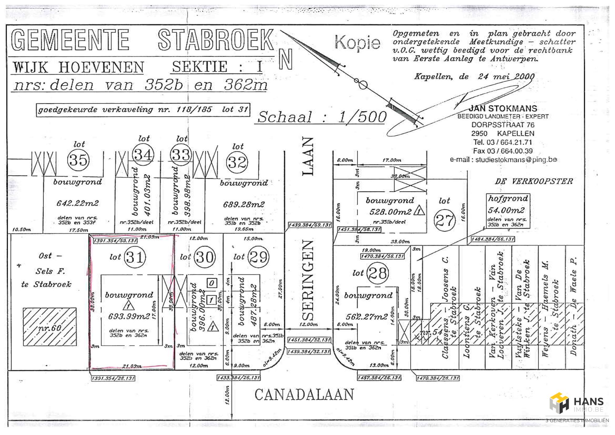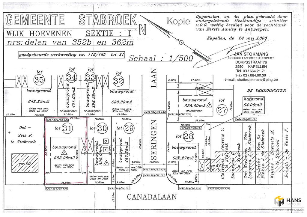 Grond van 694m² voor het bouwen van een 1 gezinswoning. Perceel 21m op 33m. Gevel van 15m en diepte 17m. Bouwvoorschriften zijn aangevraagd bij de gemeente Stabroek voor meer info www.hansimmo.be
