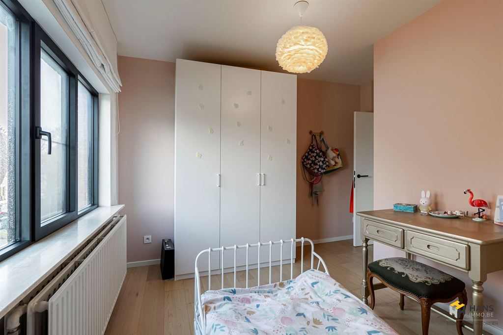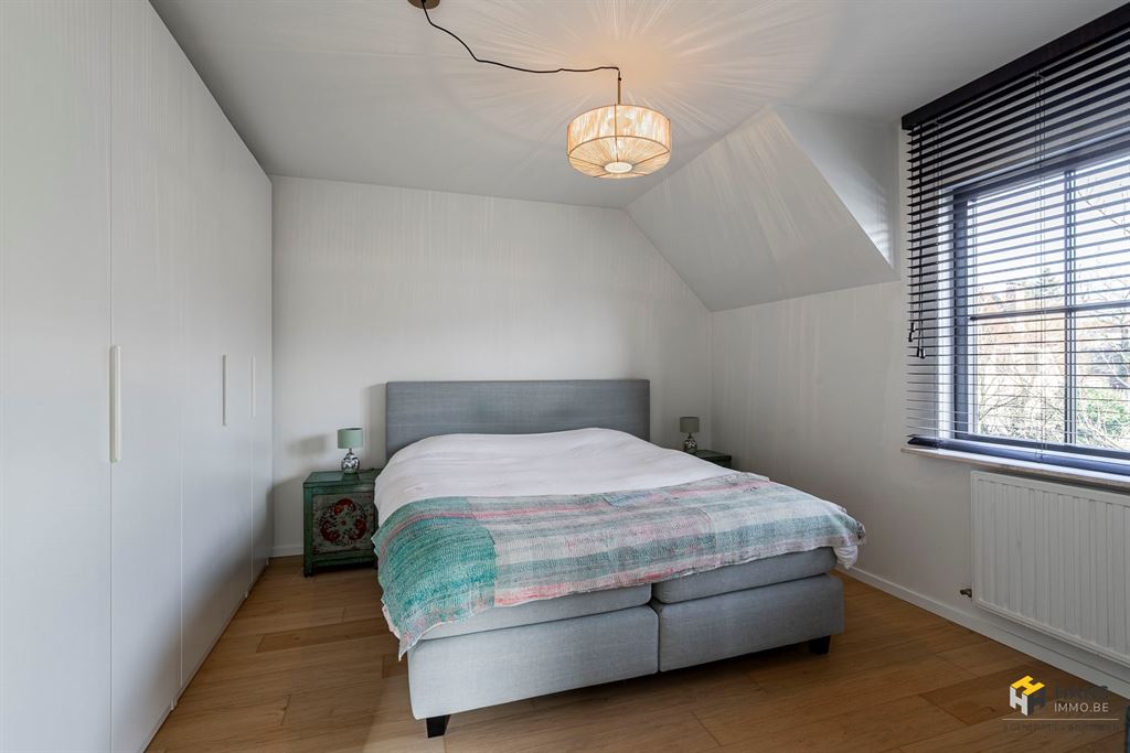 De bovenste verdieping herbergt een derde slaapkamer (20 m²) met ingemaakte kastenwanden.