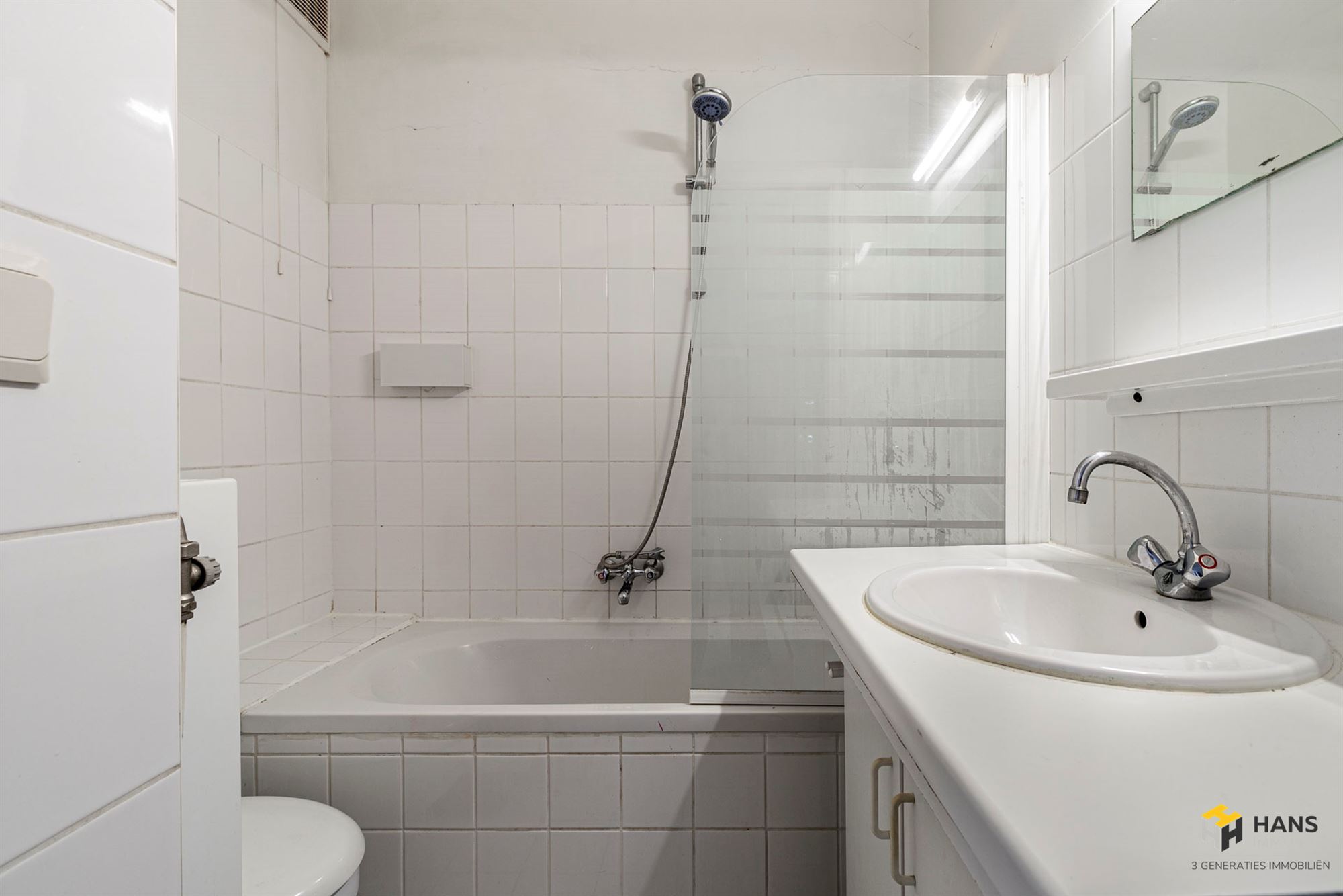 De badkamer is uitgerust met een ligbad/douche, lavabomeubel en toilet. Achteraan bevindt zich de ruime slaapkamer (15 m²). Hiernaast ligt de keuken, die voorzien is van alle hedendaags comfort en uitgeeft op het terras (5 m²) met west-oriëntatie — ideaal om te genieten van de namiddag- en avondzon.