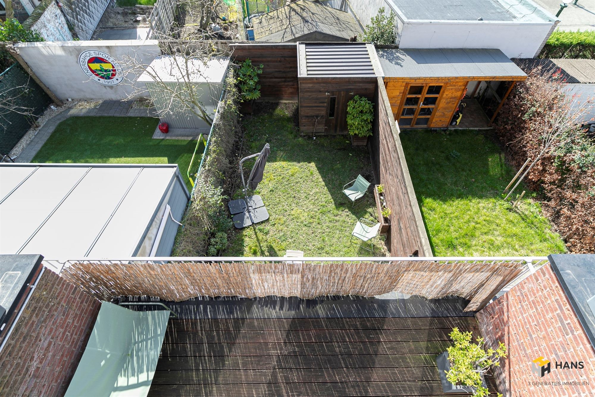 De bovenverdieping herbergt een vierde slaapkamer van 16 m², die uitgeeft op het tweede terras van 15 m². Met een tuin én twee terrassen is er hier duidelijk geen gebrek aan buitenruimte.