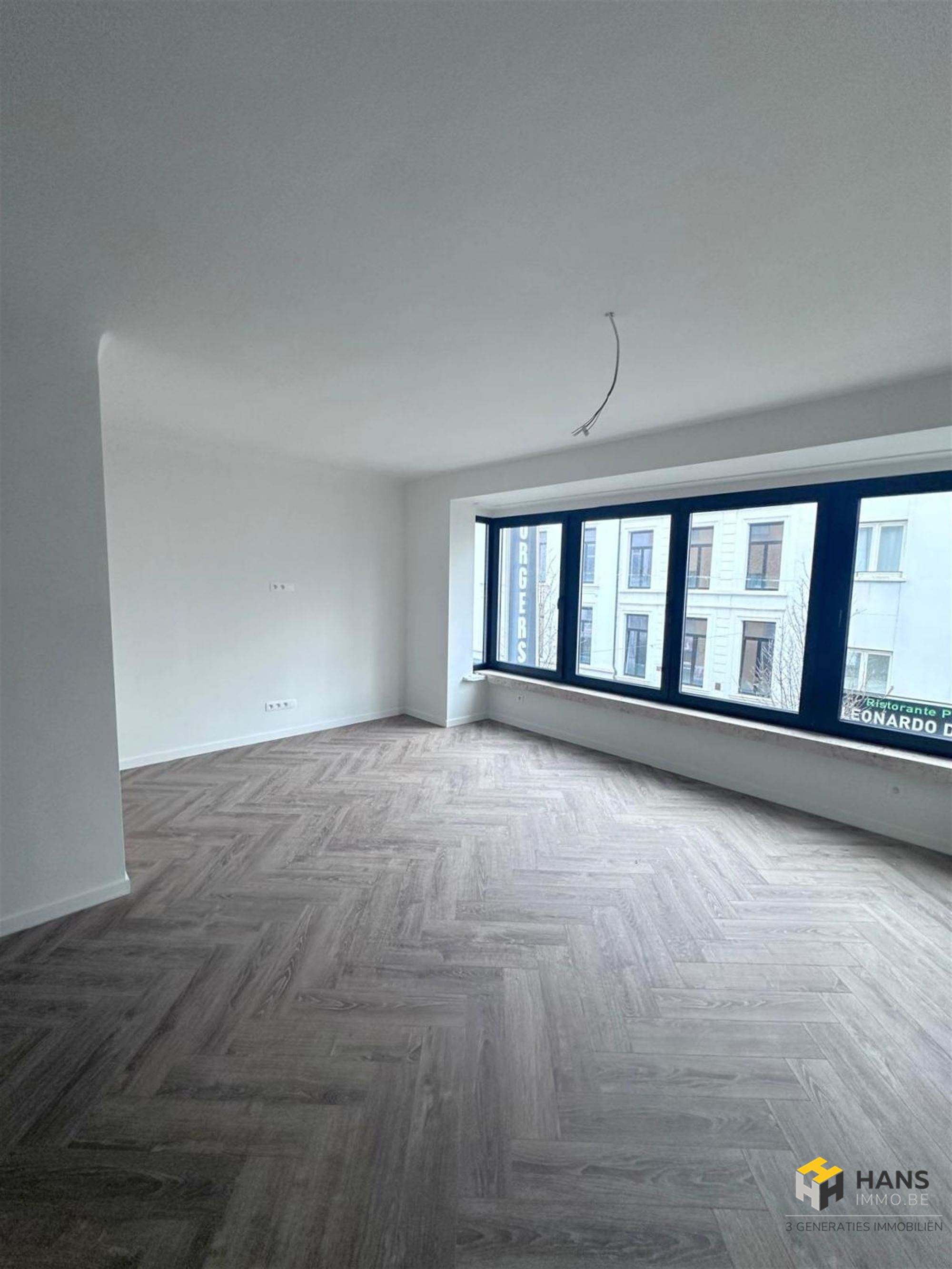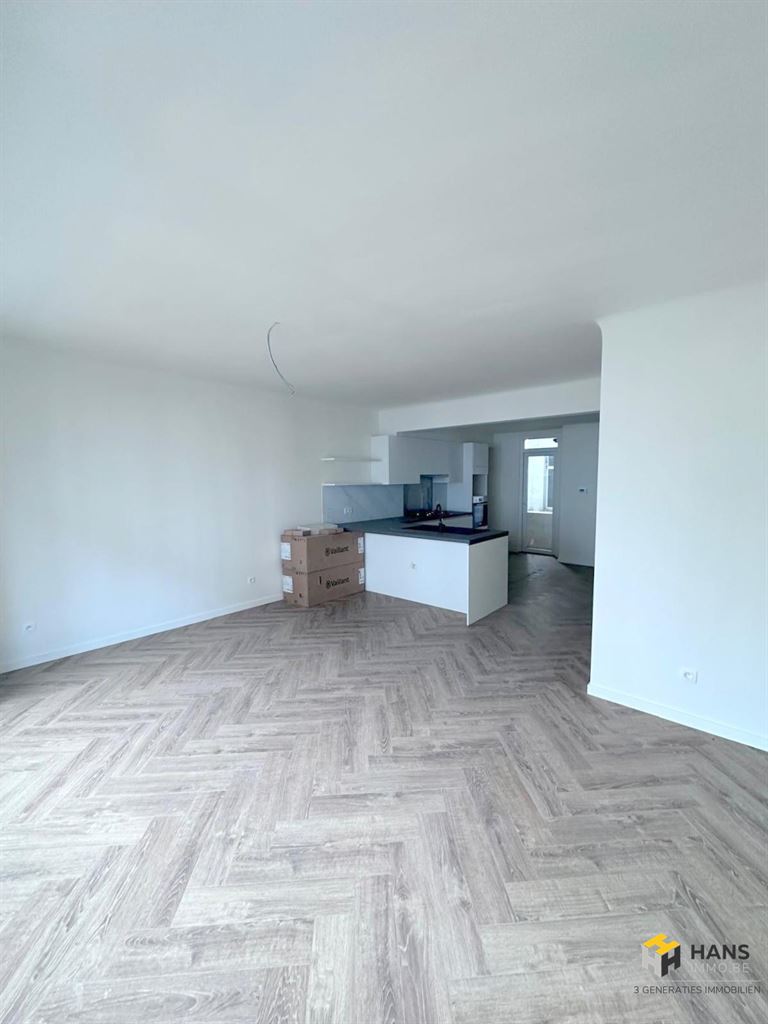 We betreden de woonst en komen in een ruime leefruimte met open keuken van 40m². De keuken is voorzien van een gasfornuis van 4 pits, oven, vaatwasmachine, enkele wasbak en een kookeiland. Aanpalend is er een terras voorzien van 2m². De badkamer is voorzien van een inloopdouche, toilet en een badkamermeubel als ook de aansluiting voor wasmachine/droogkast zijn aanwezig. Achteraan het appartement zijn er 2 slaapkamers, een grote slaapkamer van 15m² en 14,5m². Verder is er een bureauruimte van 8m² voorzien. Er zijn nieuwe PVC ramen geplaatst in driedubbele begglazing in hoogrendementsglas, de centrale verwarming en het warm water voor keuken en badkamer worden verzorgd door een condensatie gasketel. Tot slot is het appartement volledig geschilderd in het wit.
