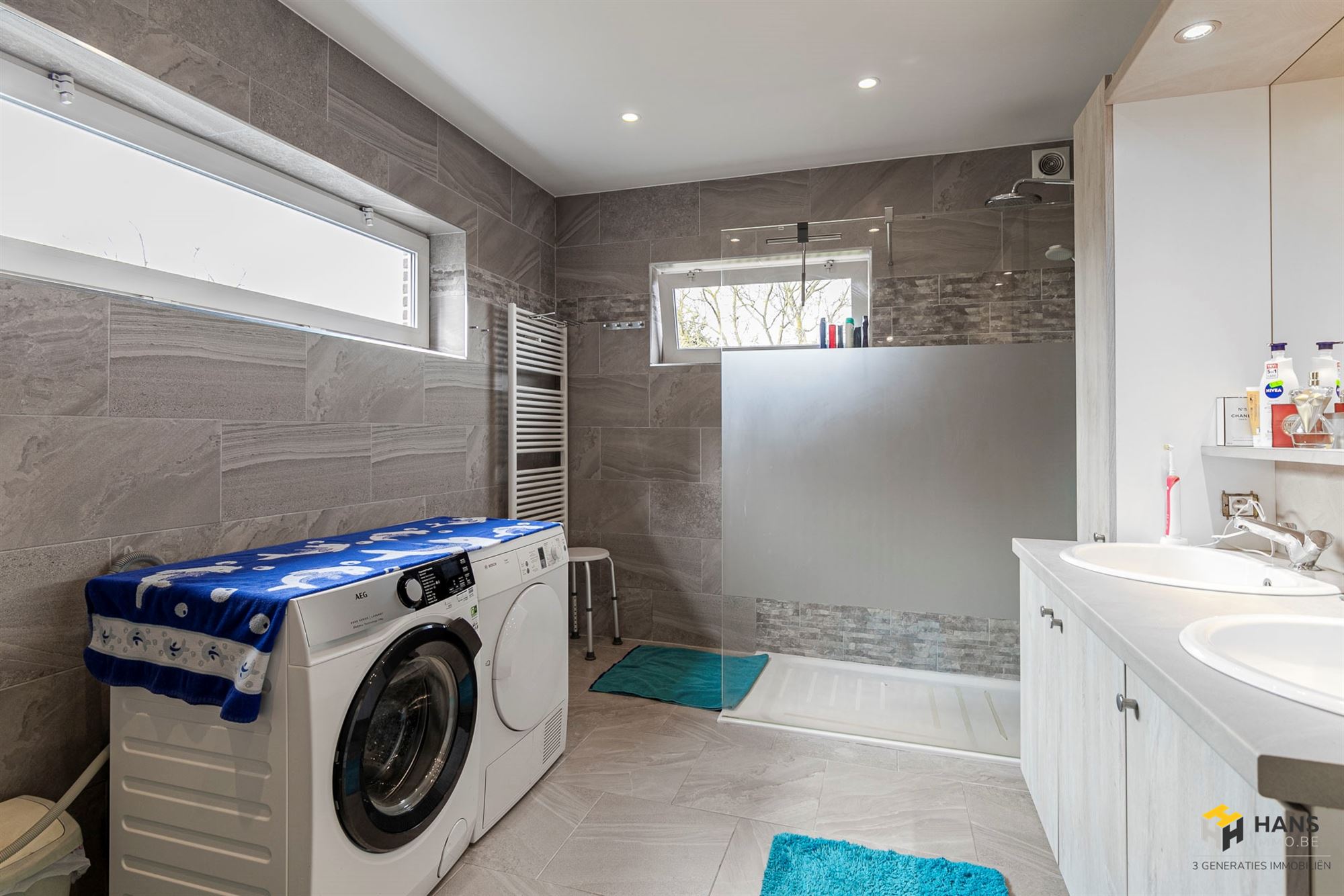 Op de bovenverdieping bevinden zich vier volwaardige slaapkamers van 19 m², 11 m², 20 m² en 23 m². De ruime badkamer (11 m²) is voorzien van een inloopdouche, dubbele lavabo, toilet en aansluitingen voor een was- en droogmachine.