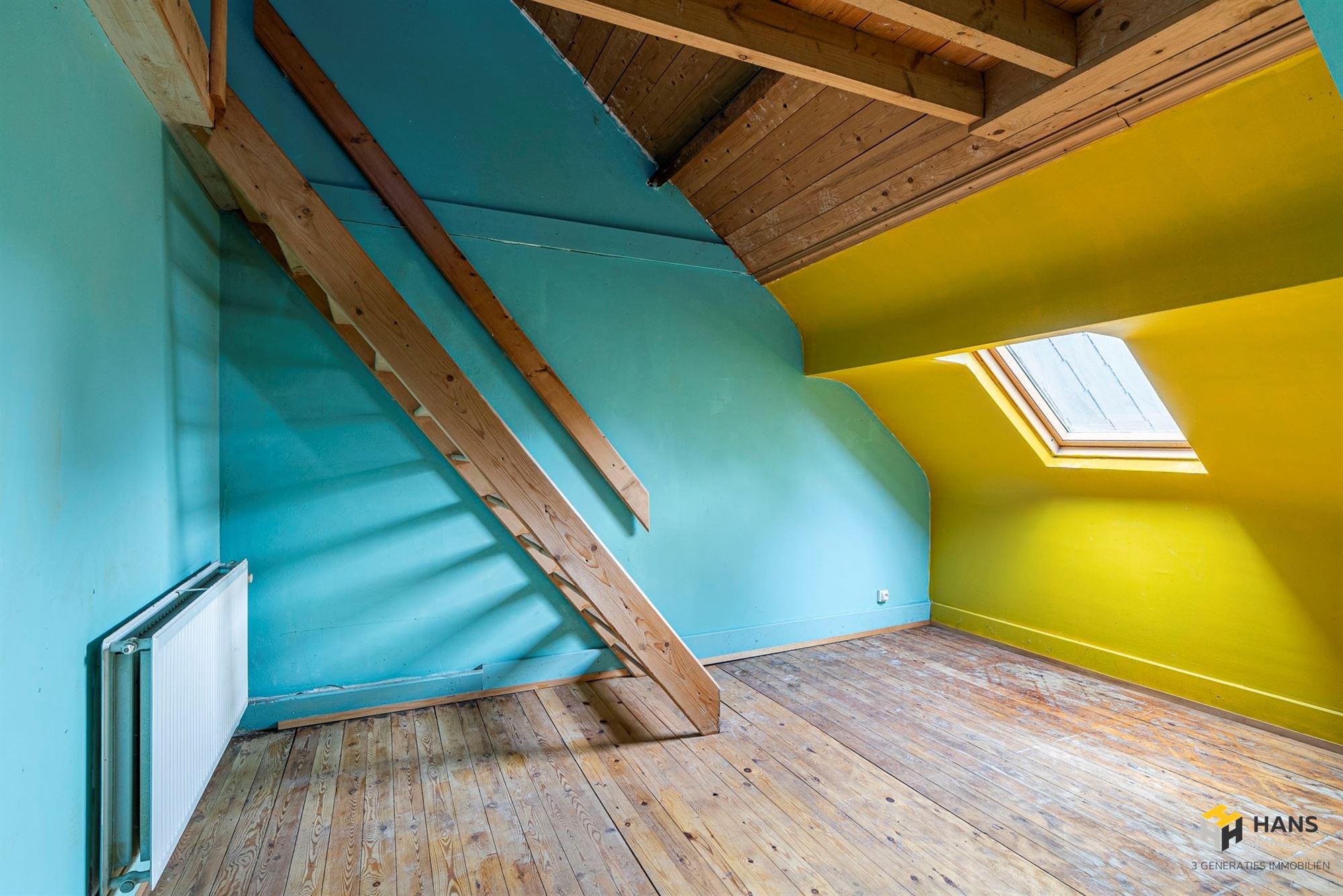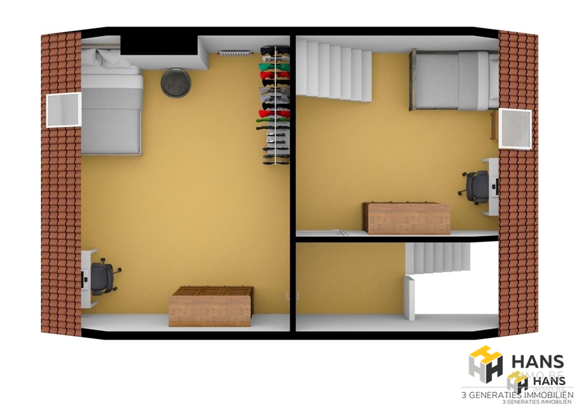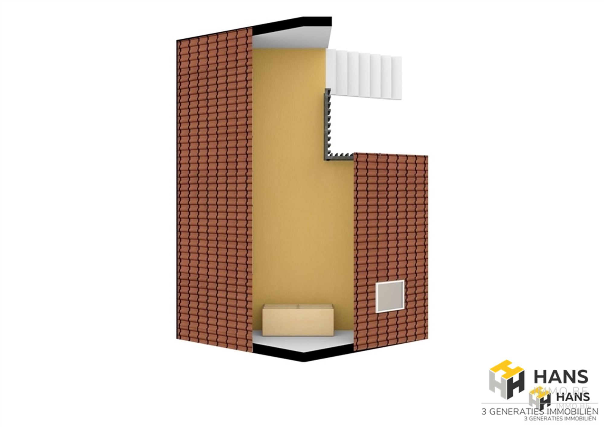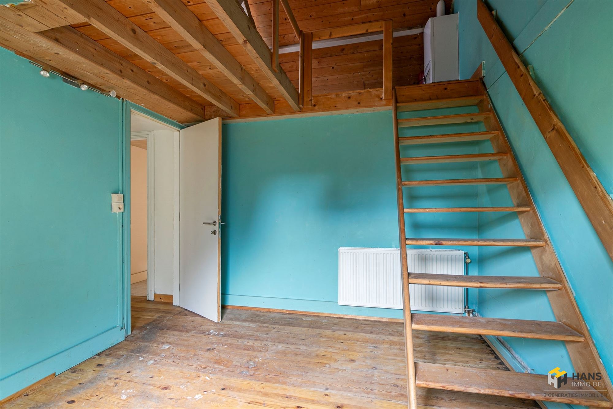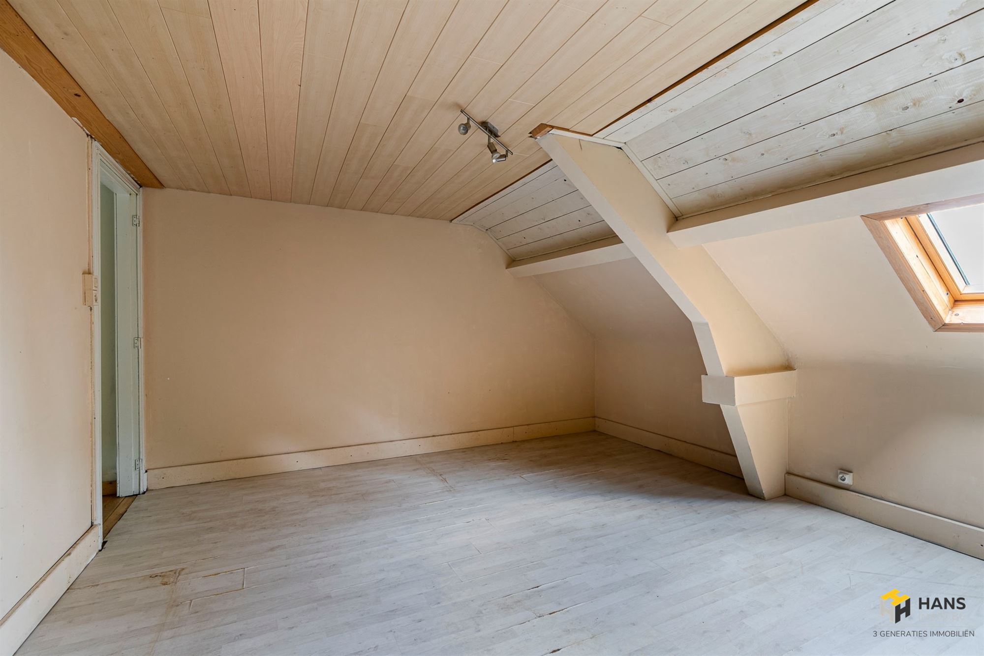 Op de bovenverdieping treffen we de 2 slaapkamers van respectievelijk 15 m² en 22 m². Het authentieke karakter van het huis wordt hier dankzij de karaktervolle planchervloer benadrukt. In de kleinste kamer hebben we via een trap toegang tot een soort mezzanine (17 m²), die voor verschillende doeleinden dienst kan doen. Opp volgens EPC. Voor meer info of een gratis schatting surf naar www.hansimmo.be.