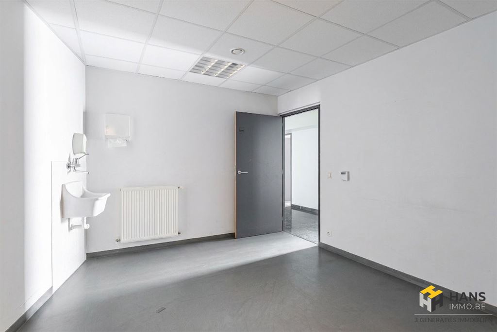 Vooraan bevindt zich een lichtrijke showroom van ca. 240 m² met aansluitend meerdere polyvalente ruimtes, ideaal voor burelen of consultaties: de mogelijkheden hier zijn eindeloos. Verder zijn er aparte sanitaire voorzieningen voor dames en heren, aangevuld met een aparte doucheruimte.