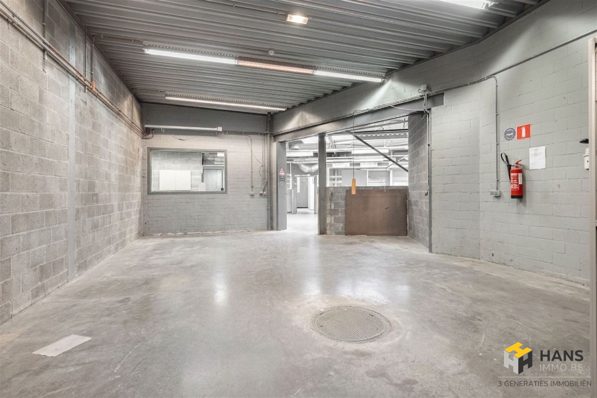 Achteraan strekt zich een bijzonder ruim magazijn/werkplaats uit van ca. 550 m², voorzien van een praktische achter- en zij-ingang — ideaal voor leveringen en logistiek.