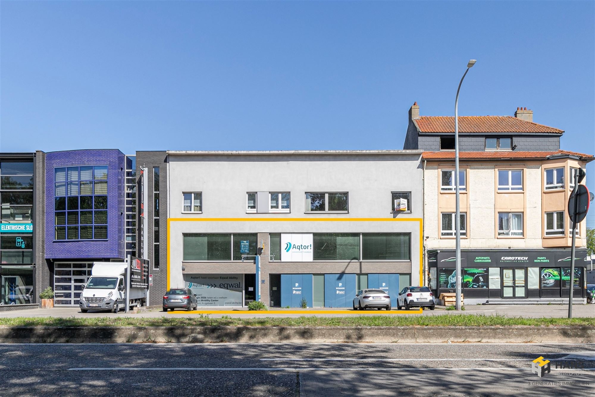 Het pand beschikt bovendien over 5 privatieve parkeerplaatsen, airconditioning in zowel showroom als kantoren en zonnepanelen die bijdragen aan een lagere energiekost.